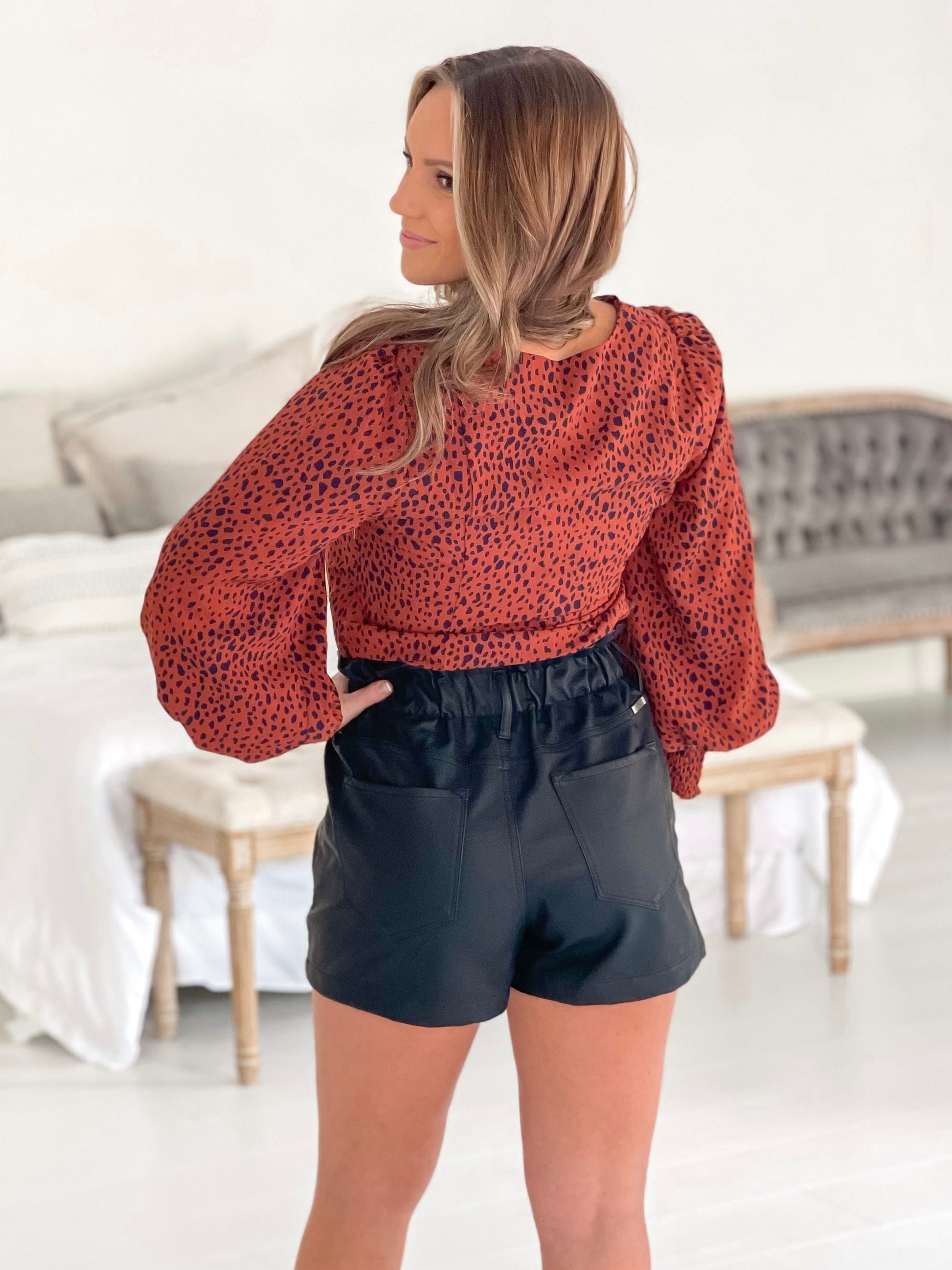 - Such an adorable maroon long sleeve top featuring balloon sleeves!