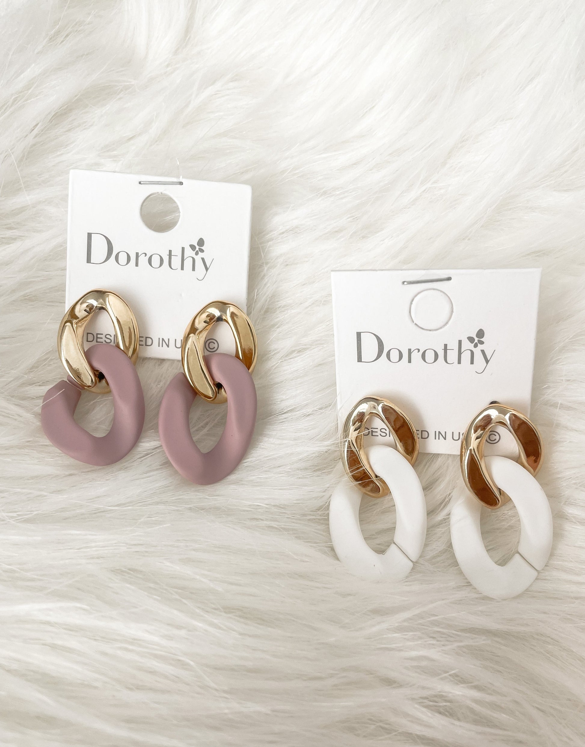 The cutest gold link earrings! Comes in colors Mauve & White!