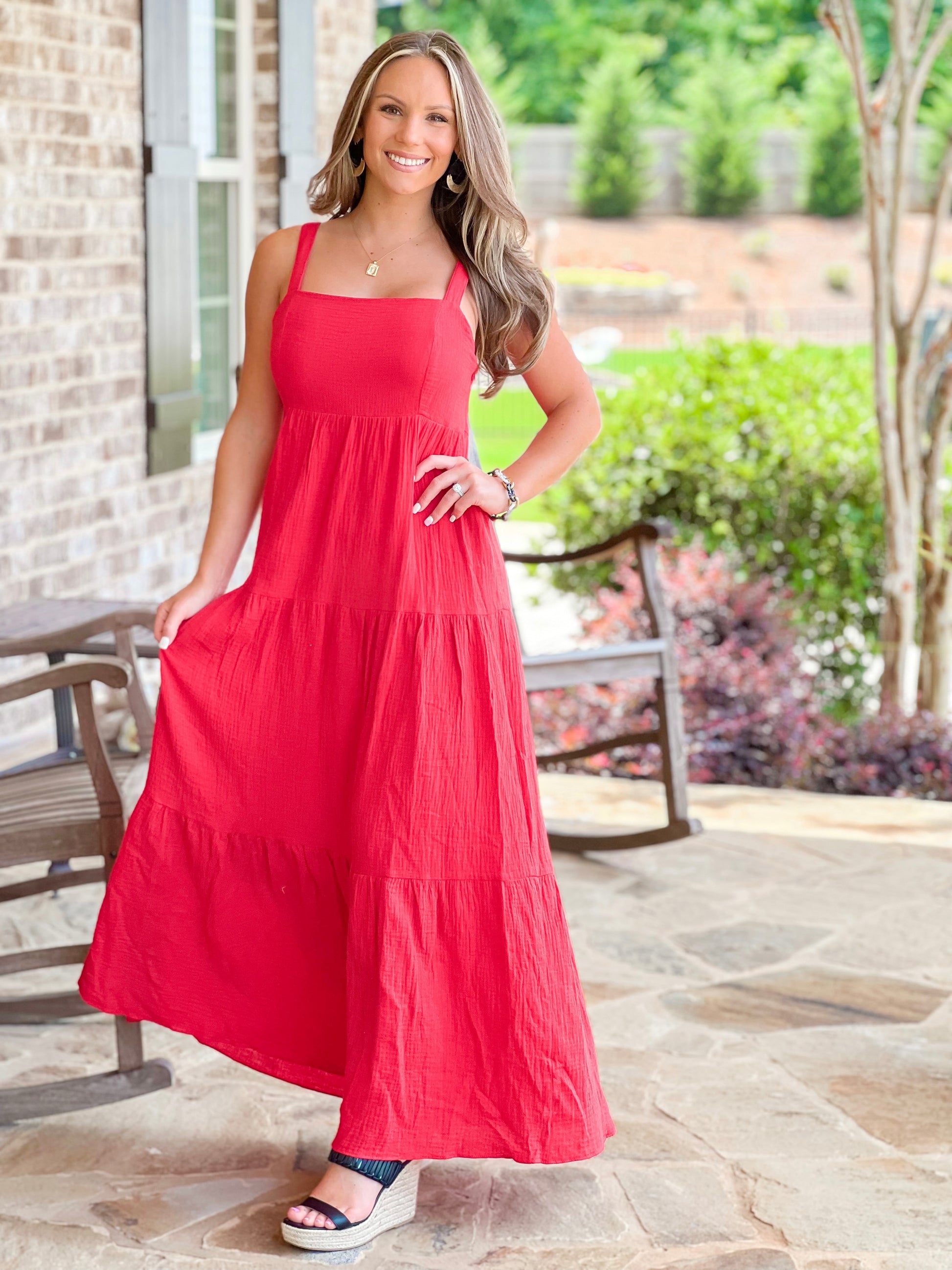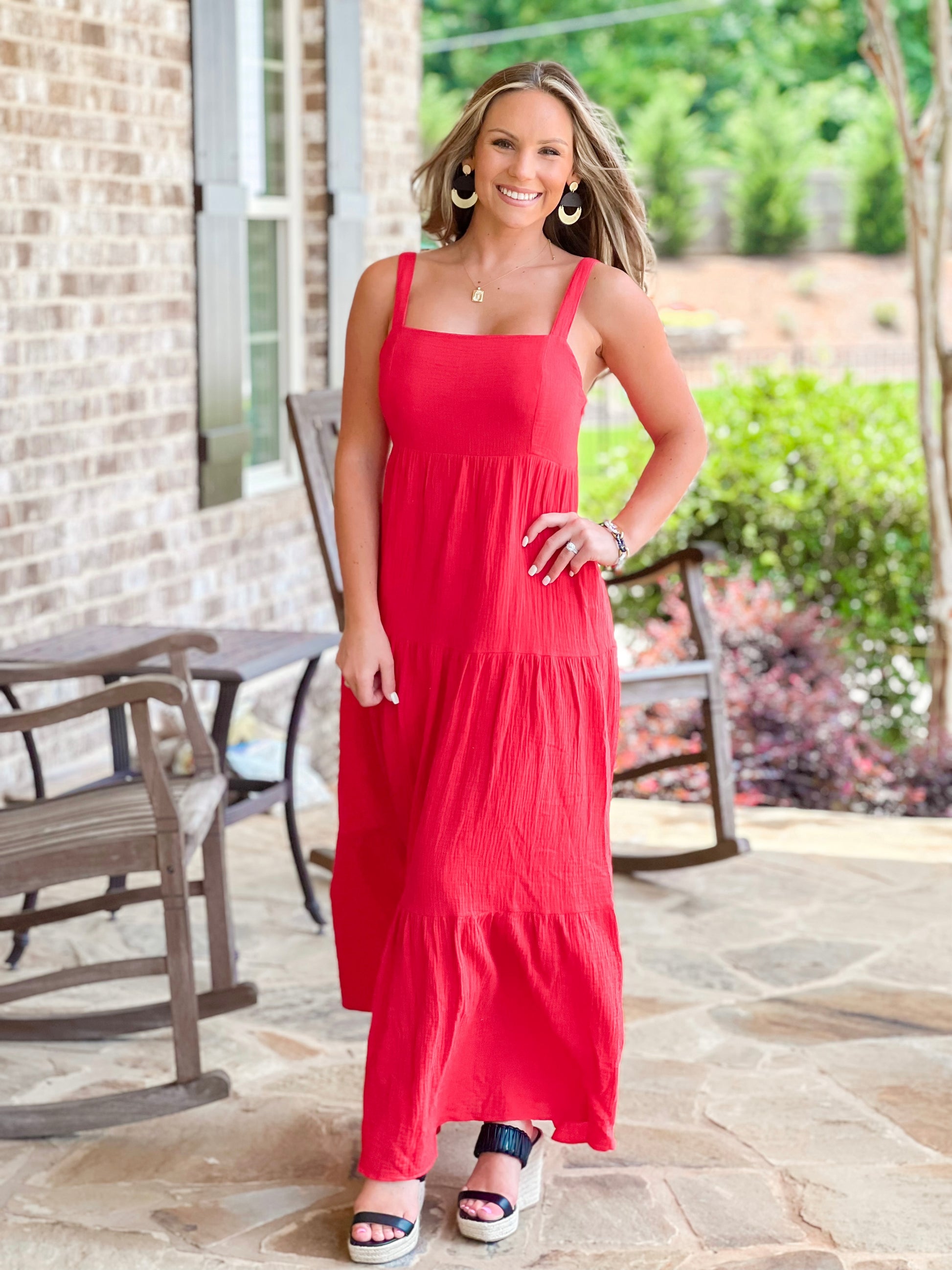 - Adorable red Maxi dress with adjustable straps! Short people friendly!
